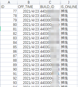 这里从数据库中导出的监测设备数据离线预警日志,需求是找出各监测对象设备掉线最长持续多久并确定其离线时长。