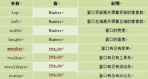 - 参数字符串:可选参数,设置窗口参数,各参数用逗号隔开