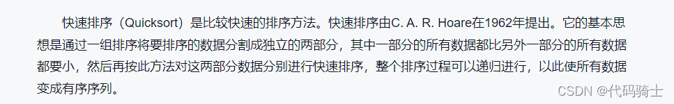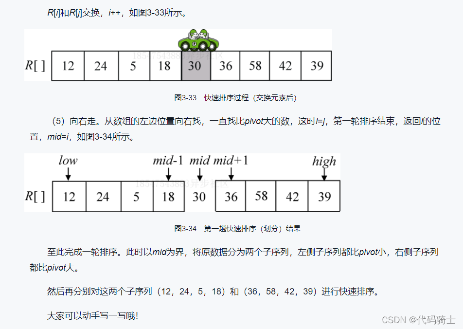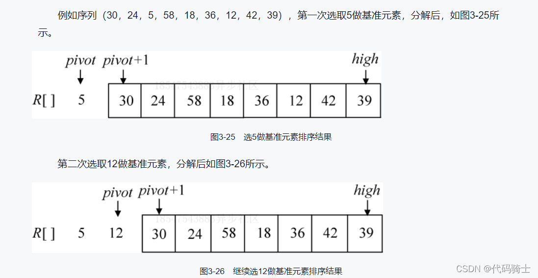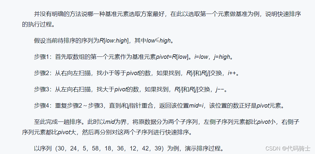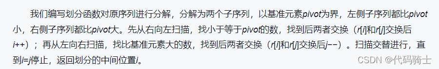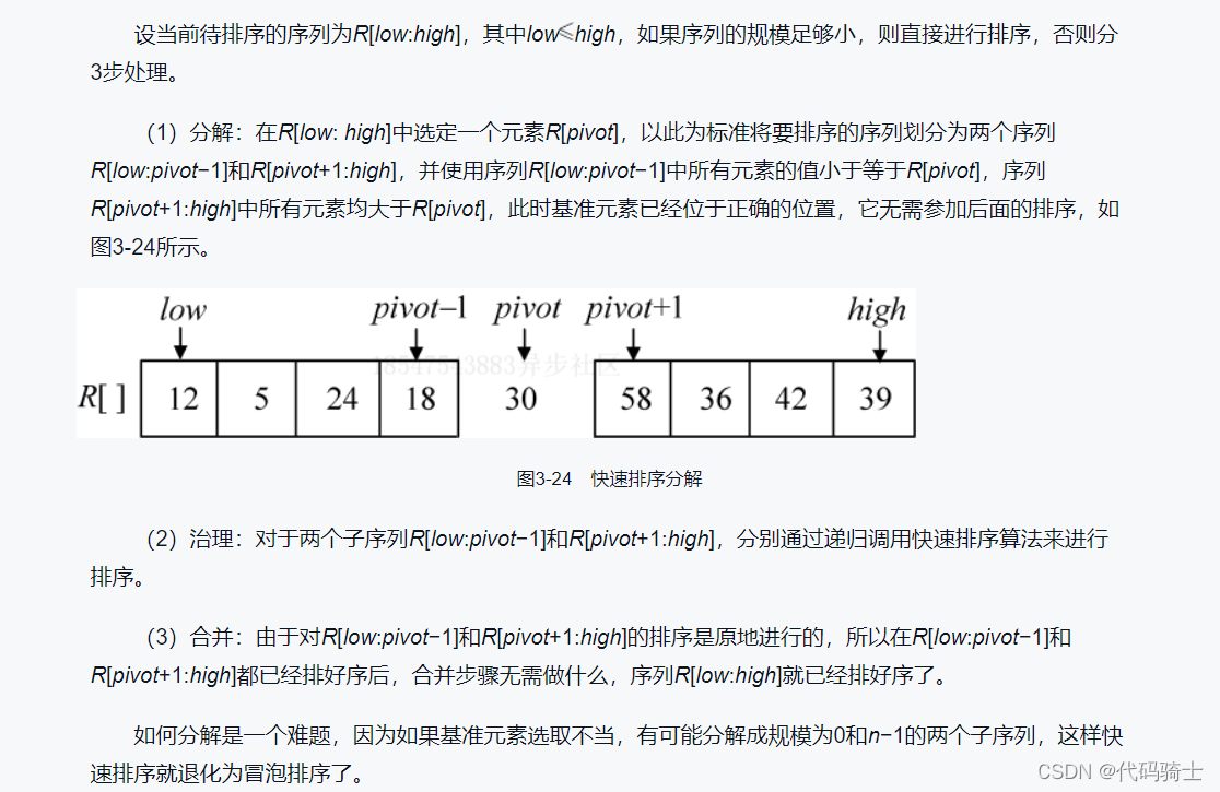 (1)分解——将待排序列元素分成大小大致相同的两个子序列。