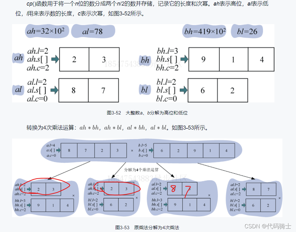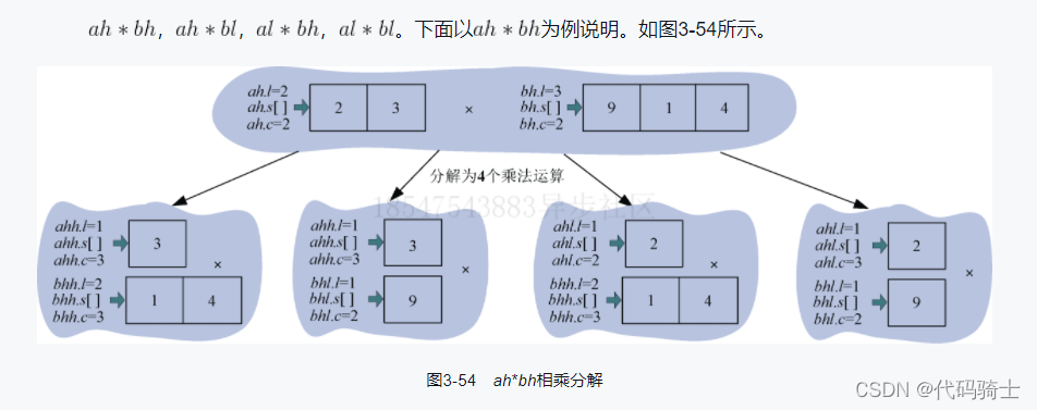 cp(pa, &ah, ma, pa->l-ma); //先分成4部分al,ah,bl,bh