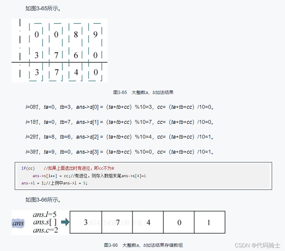 ans->s[i] = (ta + tb + cc)%10; //记录两位之和的个位数,十位做进位处理