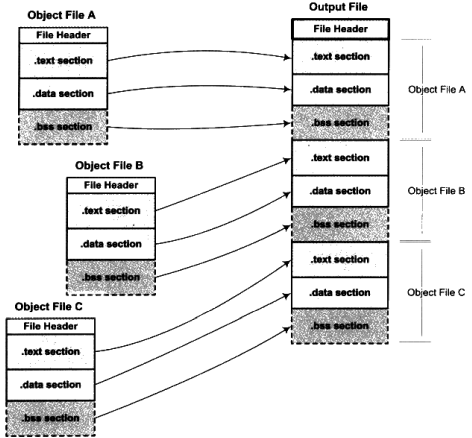 链接器在连接过程中的工作就是把多个输入的目标文件加工合并成一个输出文件。有几种不同的方案: