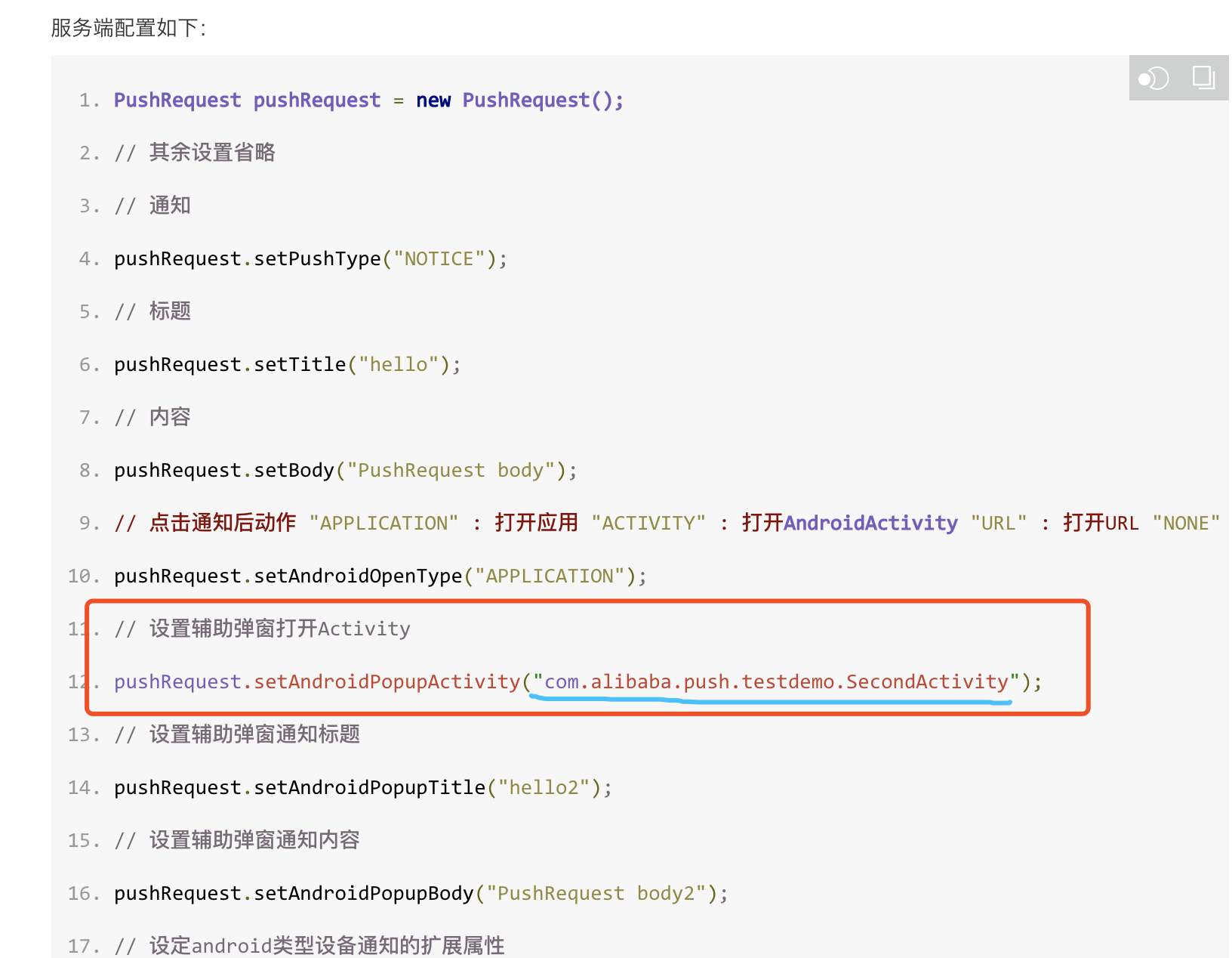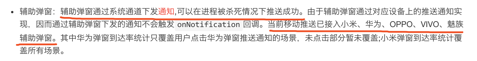 4、辅助渠道推送也需要后台服务器进行配合,具体参考移动推送辅助通道配置 的7.3场景解析中的(场景1:普通推送打开App + 辅助弹窗 或 场景2:普通推送打开Activity + 辅助弹窗)
