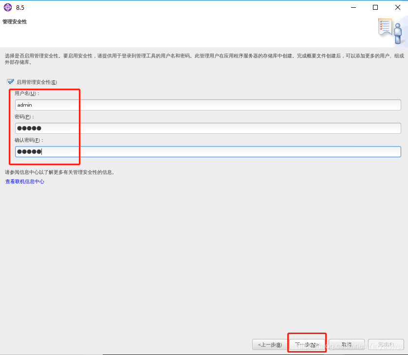 - 设置一下登录控制台的用户名和密码,然后点击“下一步”