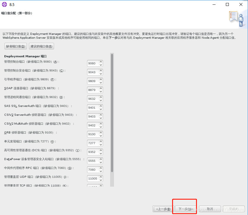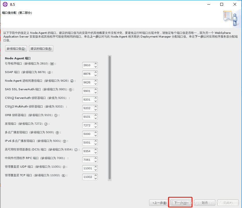 - 端口的分配共三页,也默认就行,都直接点击“下一步”