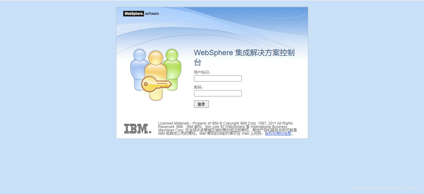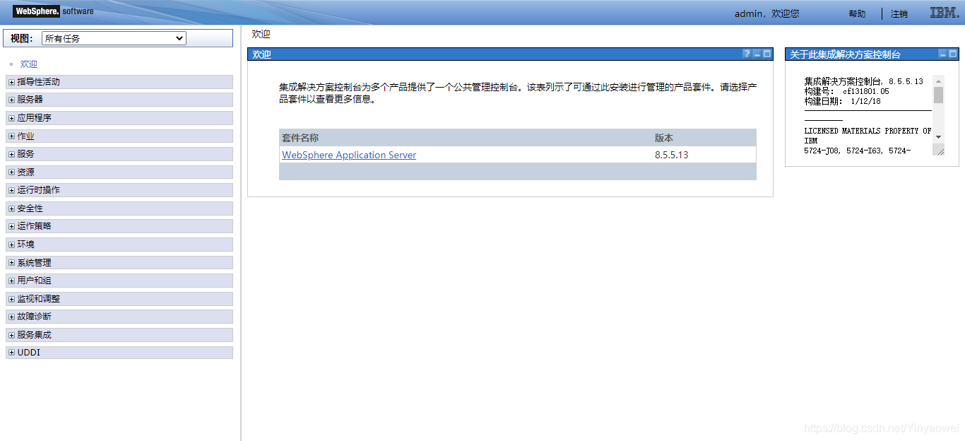 - 在浏览器窗口输入“https://服务器ip地址:9043/ibm/console”访问WebSphere控制台
