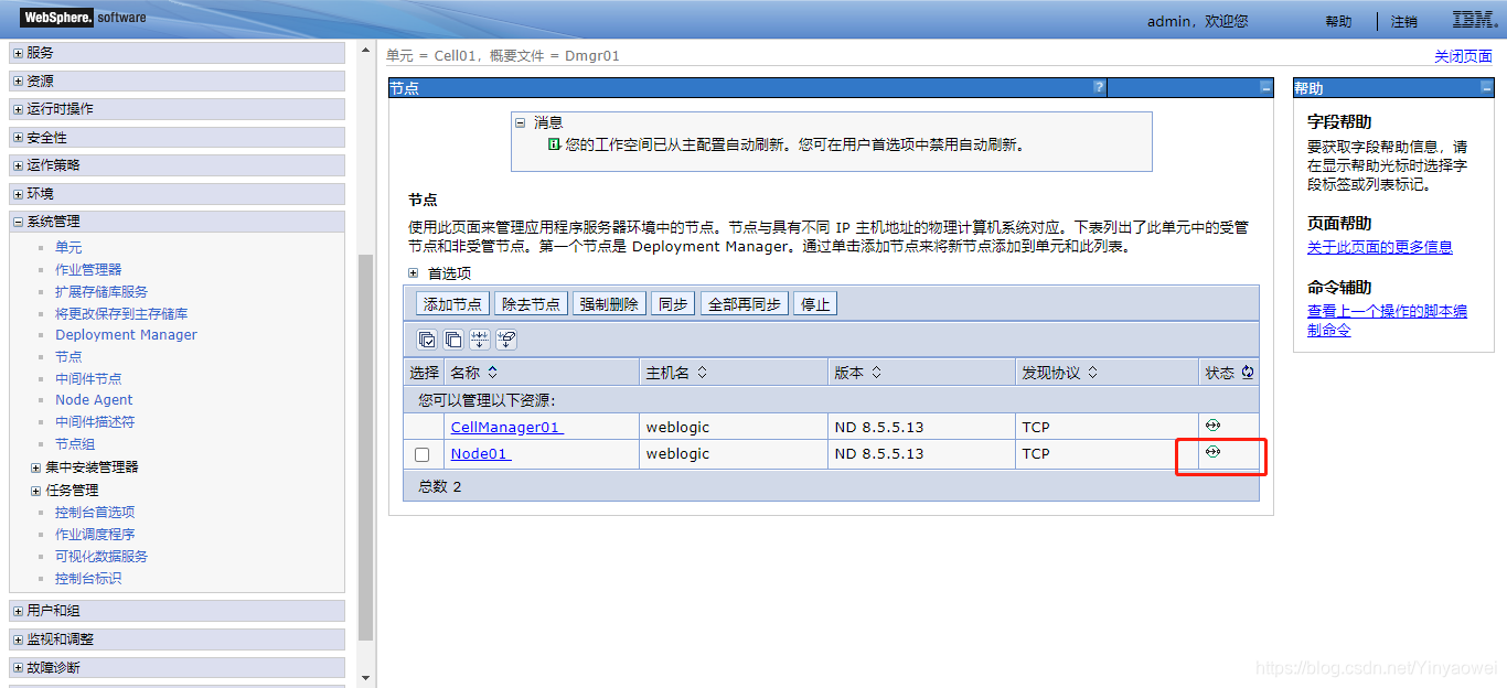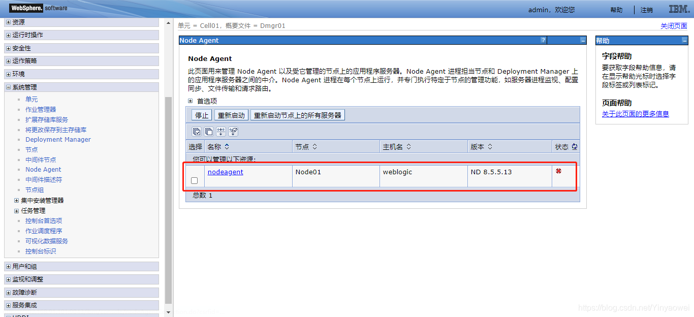 - 此时我们进入控制台的“系统管理 -> Node Agent”下查看节点的状态即可看到启动成功的标志