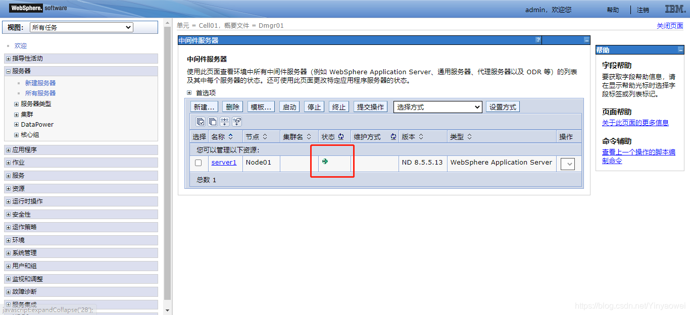 - 此时我们进入控制台的“服务器 -> 所有服务器”下查看服务的状态即可看到启动成功的标志