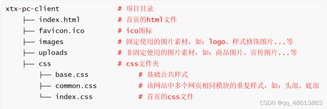 • base.css:基础公共样式(把默认样式清除的代码放到这个文件夹)