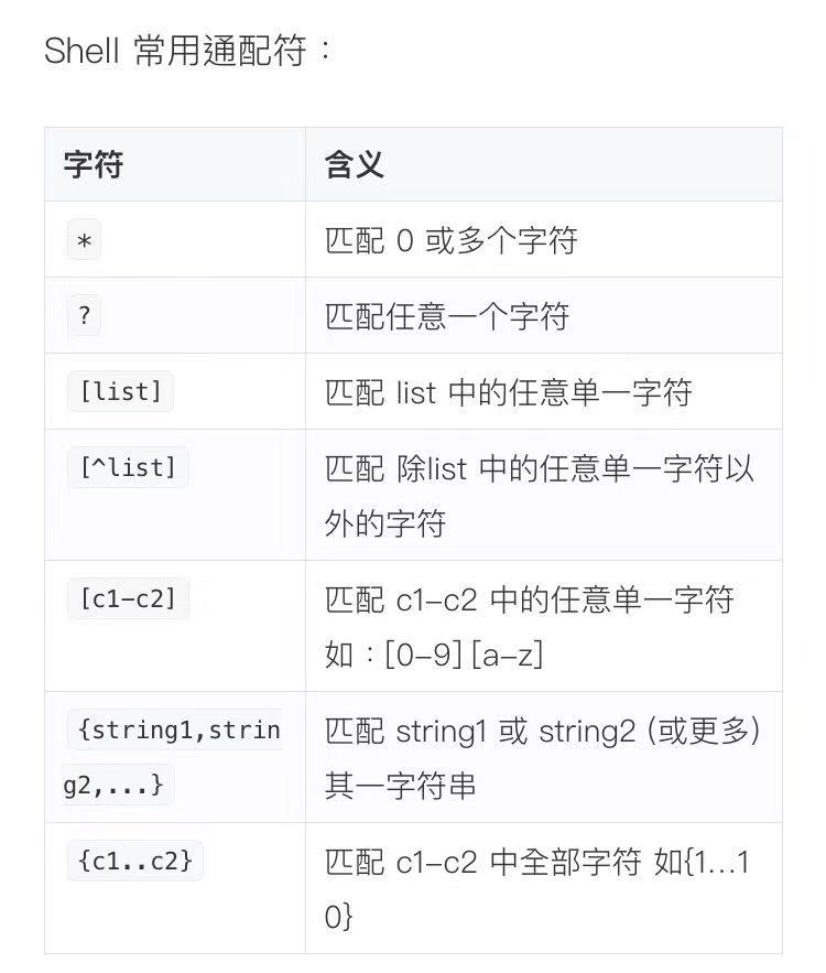 *、?:对字符串迷糊匹配(文件名,参数名),输入的通配符是由shell处理的,它只会出现在命令的参数里,命令可以用tab补全,shell在参数值中找到通配符时候,将其当做路径或者文件名磁盘中查找匹配,找到了进行替换,否则将其作为一个普通字符传给命令,再由命令进行处理,总之: