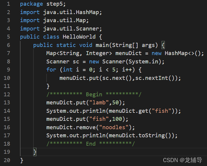 menuDict集合中添加一道菜名lamb,它的价格是50;获取