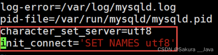 修改/etc/my.cnf配置文件,在[mysqld]下添加编码配置: