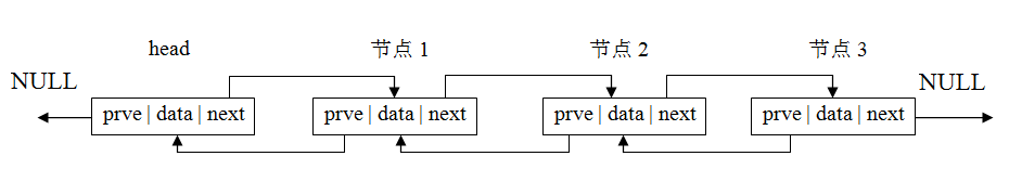 对比单向链表的数据结构,双向链表元素结构与单向链表不同点在于其多了一个用于指向上一个节点的指针成员。
