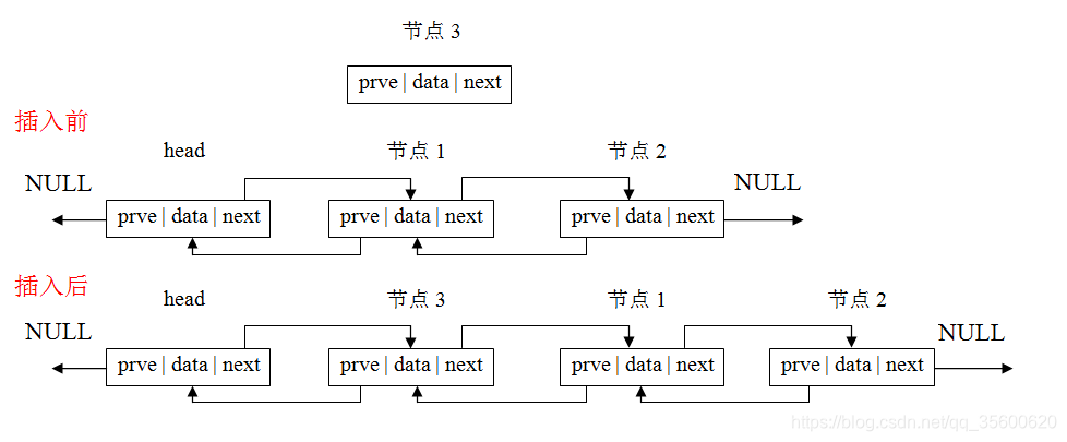 node->prev = p; //新节点的prev指针指向头指针