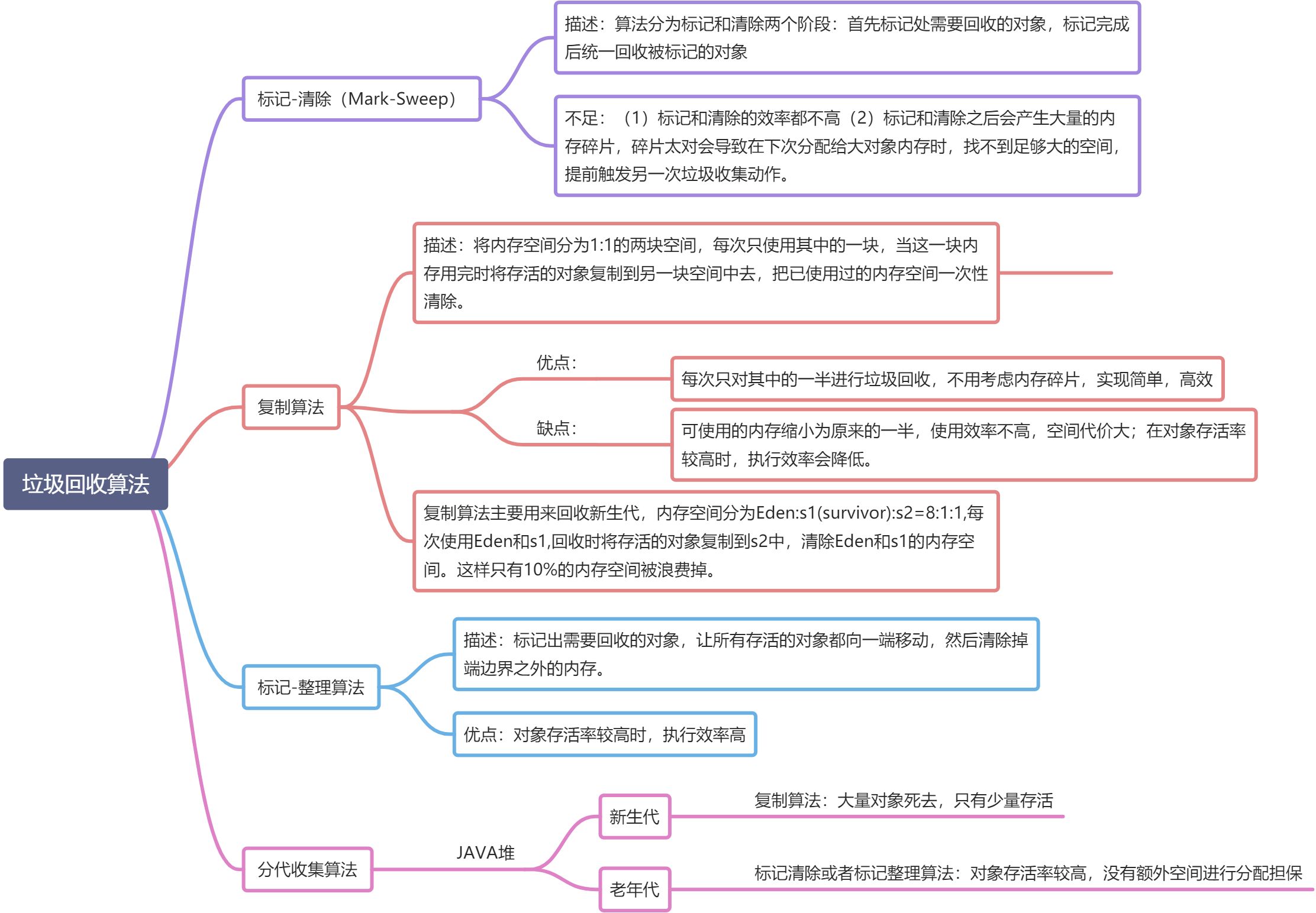 - 无用的类:(1)该类的所有实例都被回收,即java堆中没有任何该类的实例(2)加载该类的classloader已被回收(3)该类对应的Class对象没有在任何地方被引用,无法在任何地方通过反射访问该类的方法。