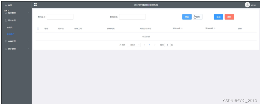 发布教师,并可以销毁某个教师,更新教师数据,模糊搜索教师数据等。