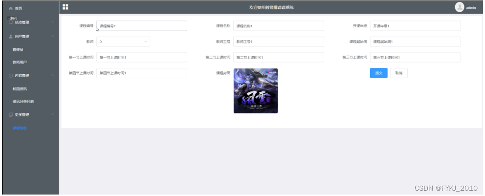 用例目的 | 测试系统后台操作员对课程信息相关信息进行管理的功能是否正常 | ||