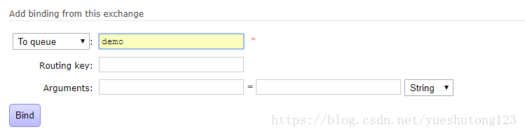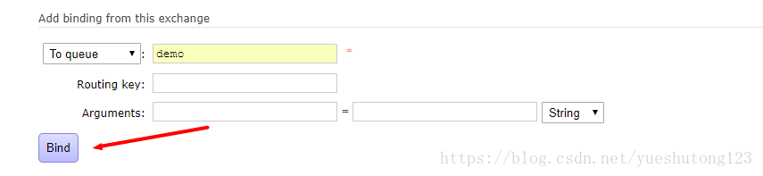 (3).点击demo-direct交换机进入绑定消息队列demo: