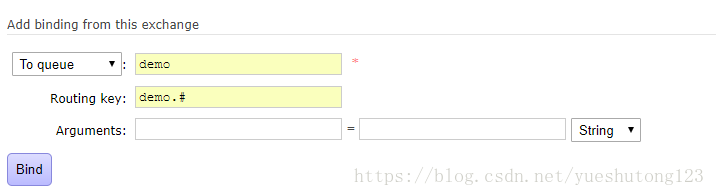 3.交换机绑定消息队列,注意此处的路由键Routing key使用了通配符