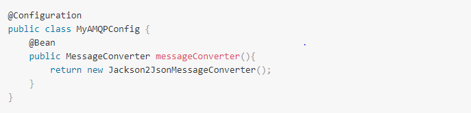 此时发送消息我们在rabbitmq网页发现消息是经序列化后的,我们如果想改变序列化机制为JSON,也很简单,只需要注入一个人Bean: