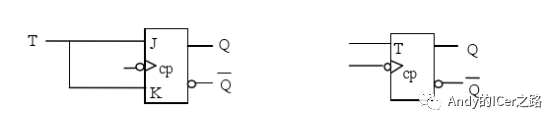 因为T=J=K,所以当T=0的时候,CP脉冲来后触发器维持原状不变。当T=1的时候,每一个CP脉冲来的时候,触发器状态翻转一次。