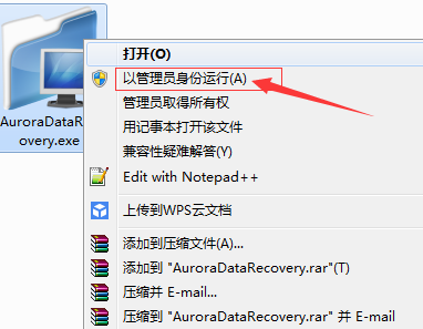 步骤1:先下载并解压软件打开后,直接双击需要恢复的分区,接着右击软件图标选择《以管理员身份运行》