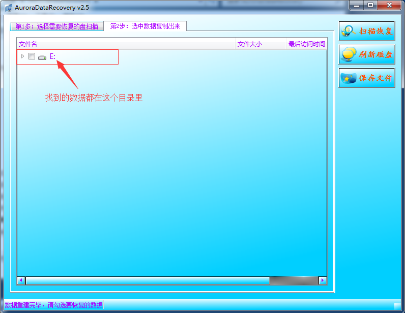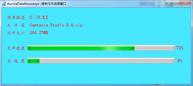 步骤3:软件会很快将找出的资料,放到与要恢复盘卷标名相同的目录中