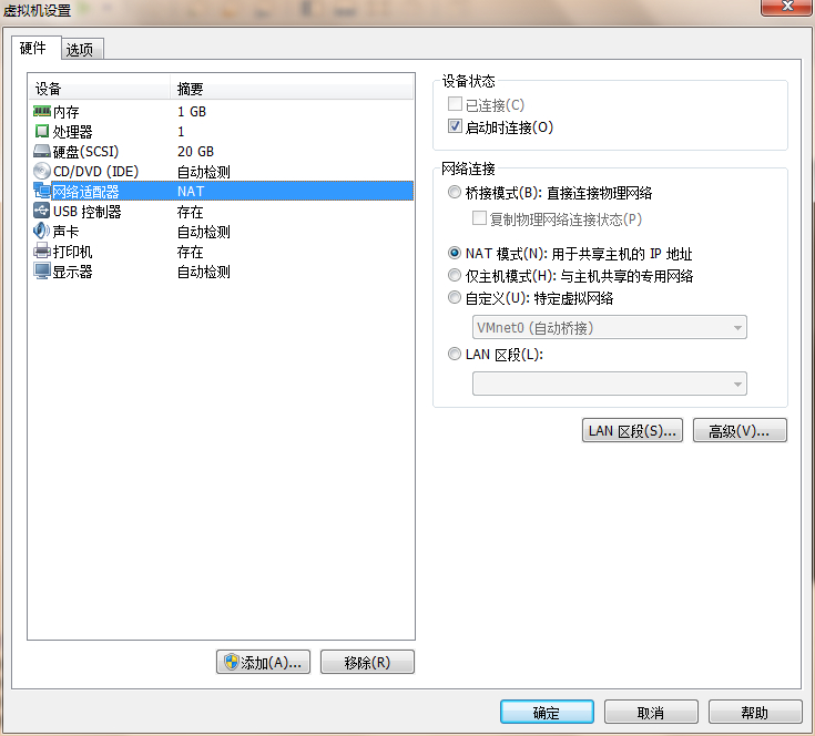 4、选择一个系统,点击编辑虚拟机设置,该页面选择NAT网络连接模式