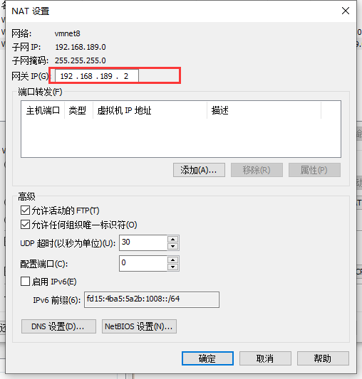 3、NAT 设置中记住网关