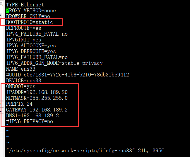 6、执行vim /etc/sysconfig/network-scripts/ifcfg-ens33