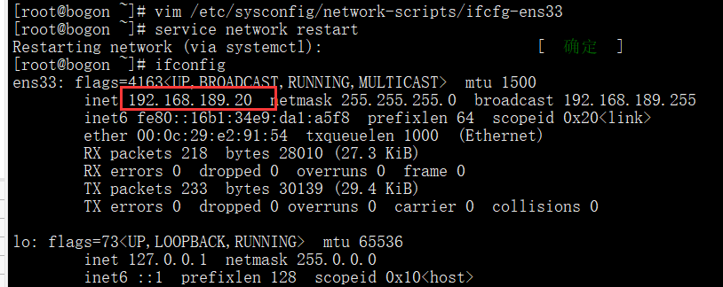 7、重启网卡服务service network restart