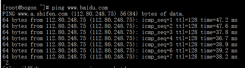 ping百度,虚拟机和物理机互ping通(或者ping外网地址,如百度),则设置成功