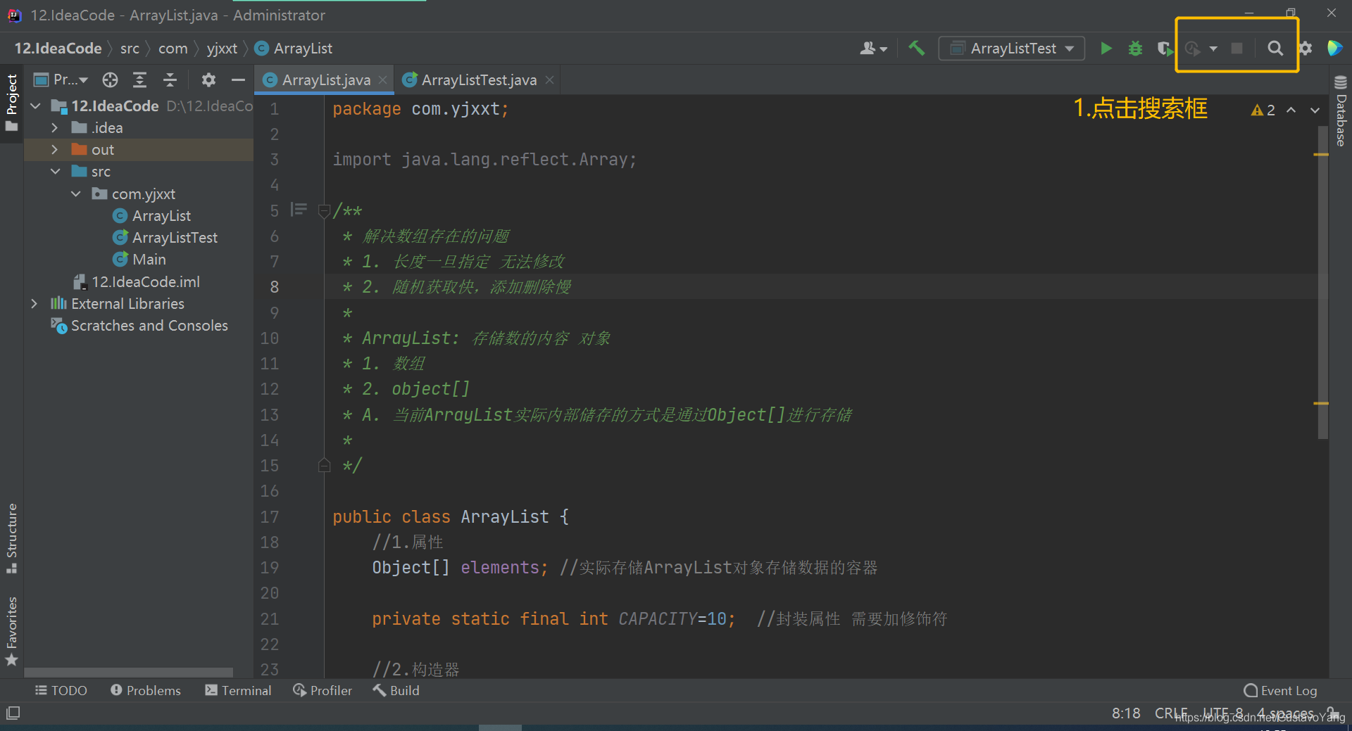 背景:初学JAVA,半屏教学视频,半屏idea,觉得idea的工具栏严重挤压半屏空间,果断上网搜寻隐藏工具栏的方法,开开心心地关闭顶部工具栏,结果回不去了。。。如下图所示: