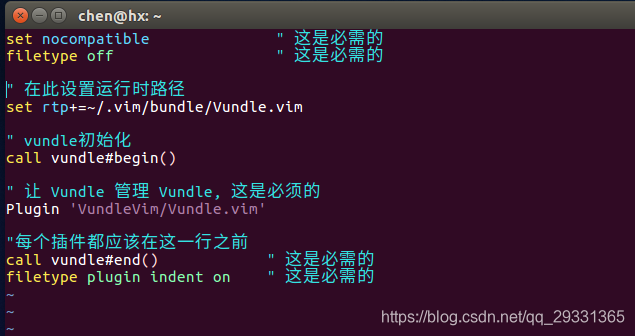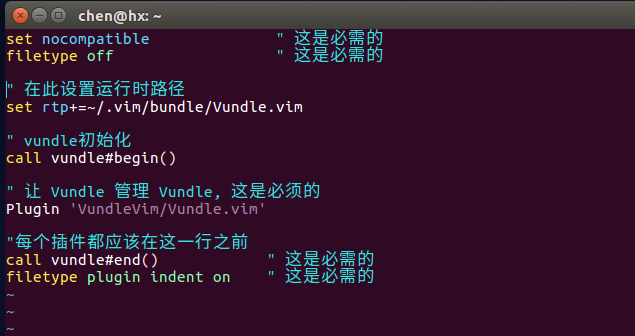上面的配置是 vundle 的模板,我们自己要添加的插件写在 call vundle#begin() 和 call vundle#end() 之间;