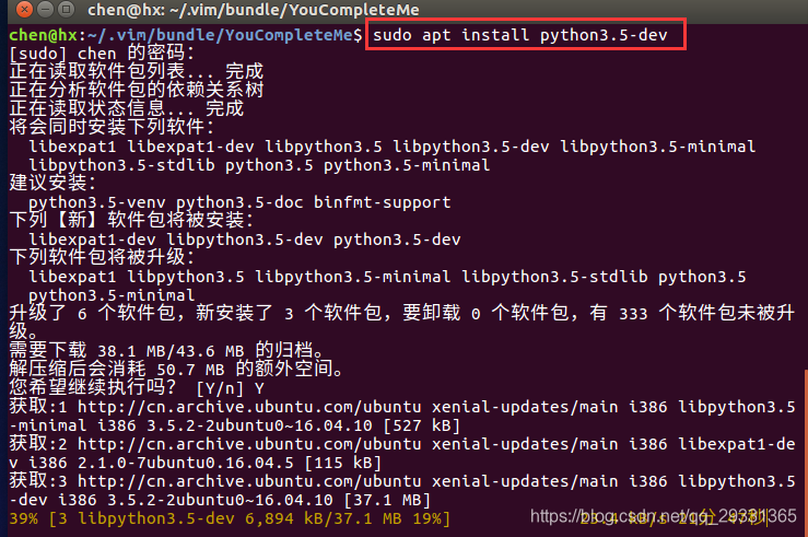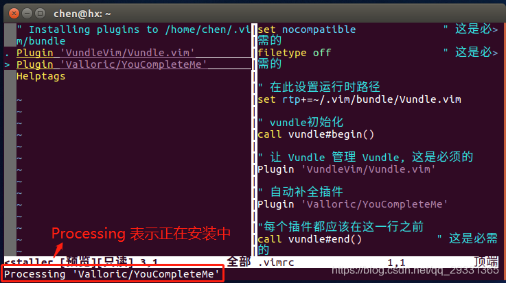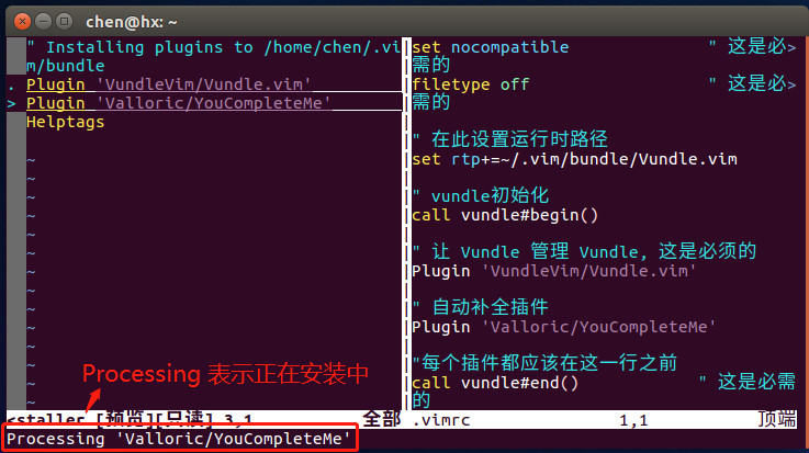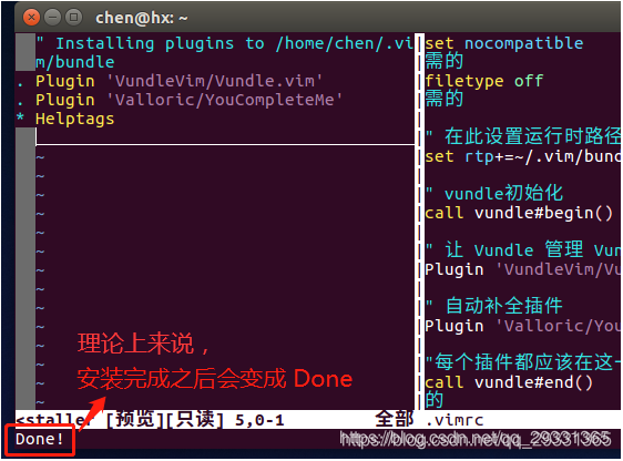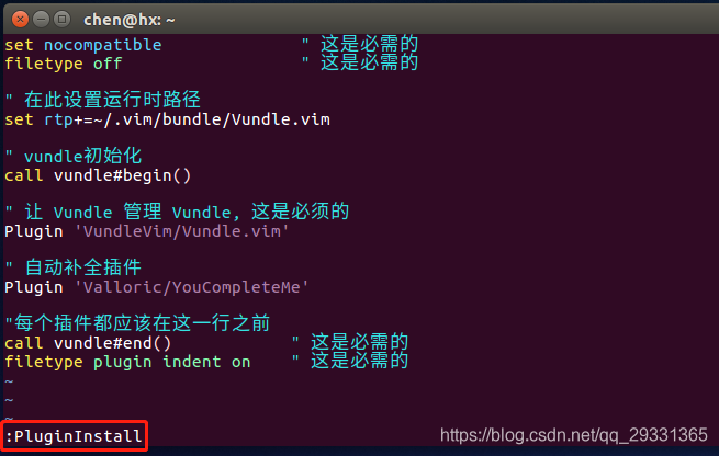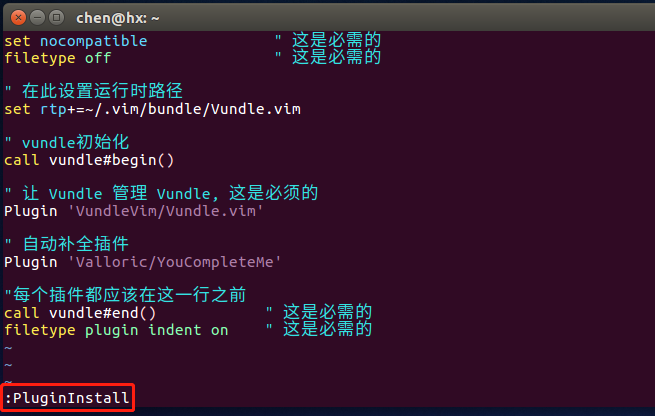 安装插件:在 vim 的命令界面,输入 :PluginInstal;