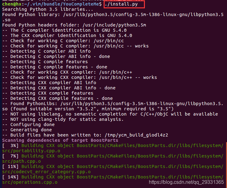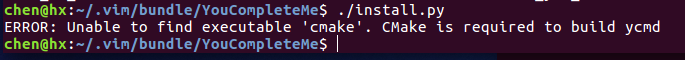 解决办法是:cd ~/.vim/bundle/YouCompleteMe,然后运行 ./install.py,但是我这边运行这个命令时报如下错误:ERROR: Unable to find executable 'cmake'. CMake is required to build ycmd;