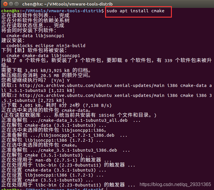 解决办法是安装 cmake,运行如下命令: sudo apt install cmake