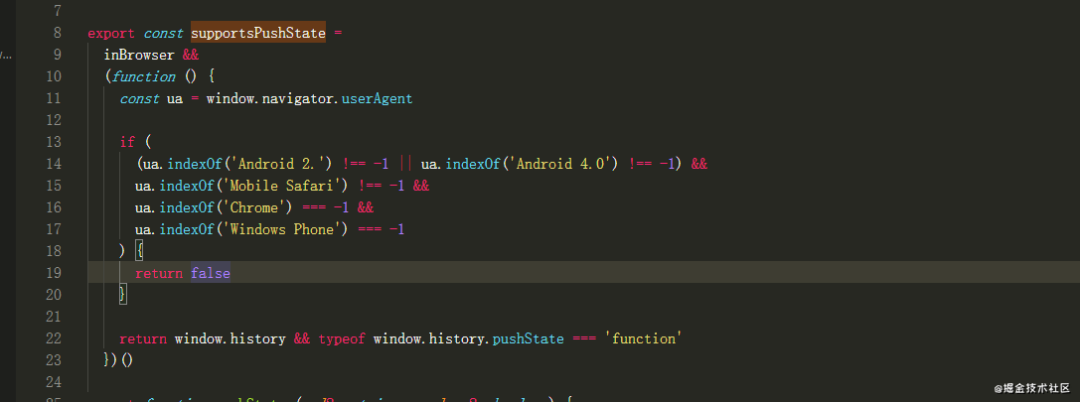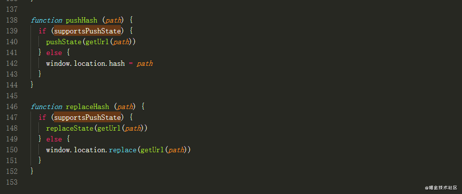 有这么一段代码,在 supportsPushState为false时,才会走else逻辑,else的逻辑才会触发window.addEventListener('hashchange',()=>{}),那它为什么不走?supportsPushState又是什么?pushState,replaceState又是怎么实现的?为什么它会触发自定义事件?