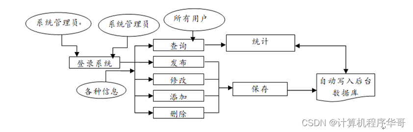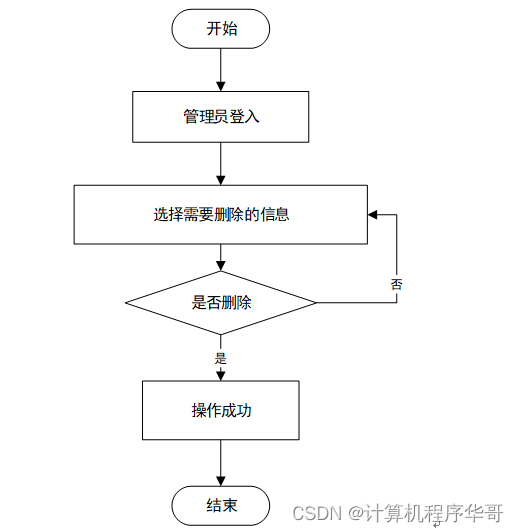 运行的主要流程为,登入管理员用户名,因为只有管理员才有权限进行该操作,然后查看所有注册用户的信息,选中需要删除的用户信息,然后确认删除,即为完成,系统将修改的数据更新至数据库,主要过程如图3-1所示: