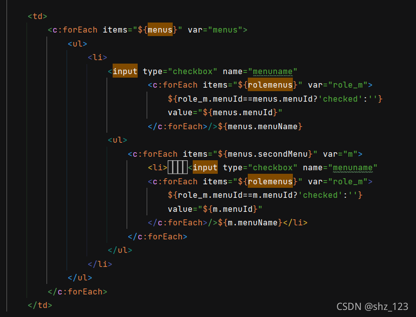 其中关键的地方是在表单form标签中嵌套forEach标签的使用