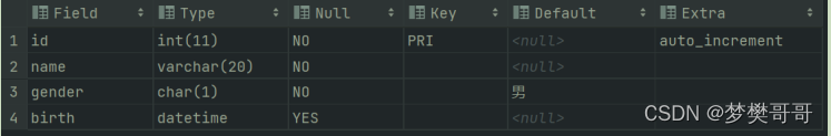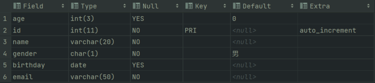(2)auto_increment:它是用于定义主键是否可以自增,如果在主键上指定了这个属性,则表示主键的值是递增。这个属性是 MySQL 中可以使用的,在别的数据库中可能不能正常使用。