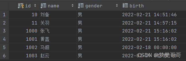 ('赵云', '男', '2022-02-19');