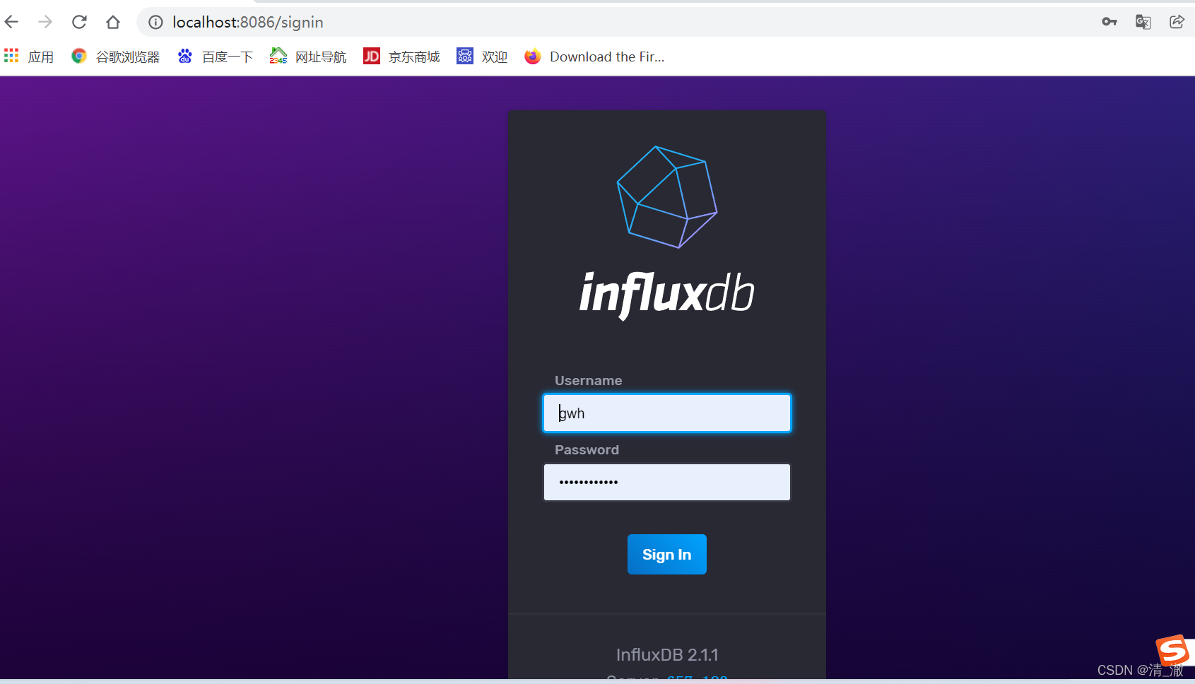windows环境下载安装包,解压 influxdb2-2.1.1-windows-amd64.zip 即可用,cmd进入解压目录, 执行 influxd 即可启动: