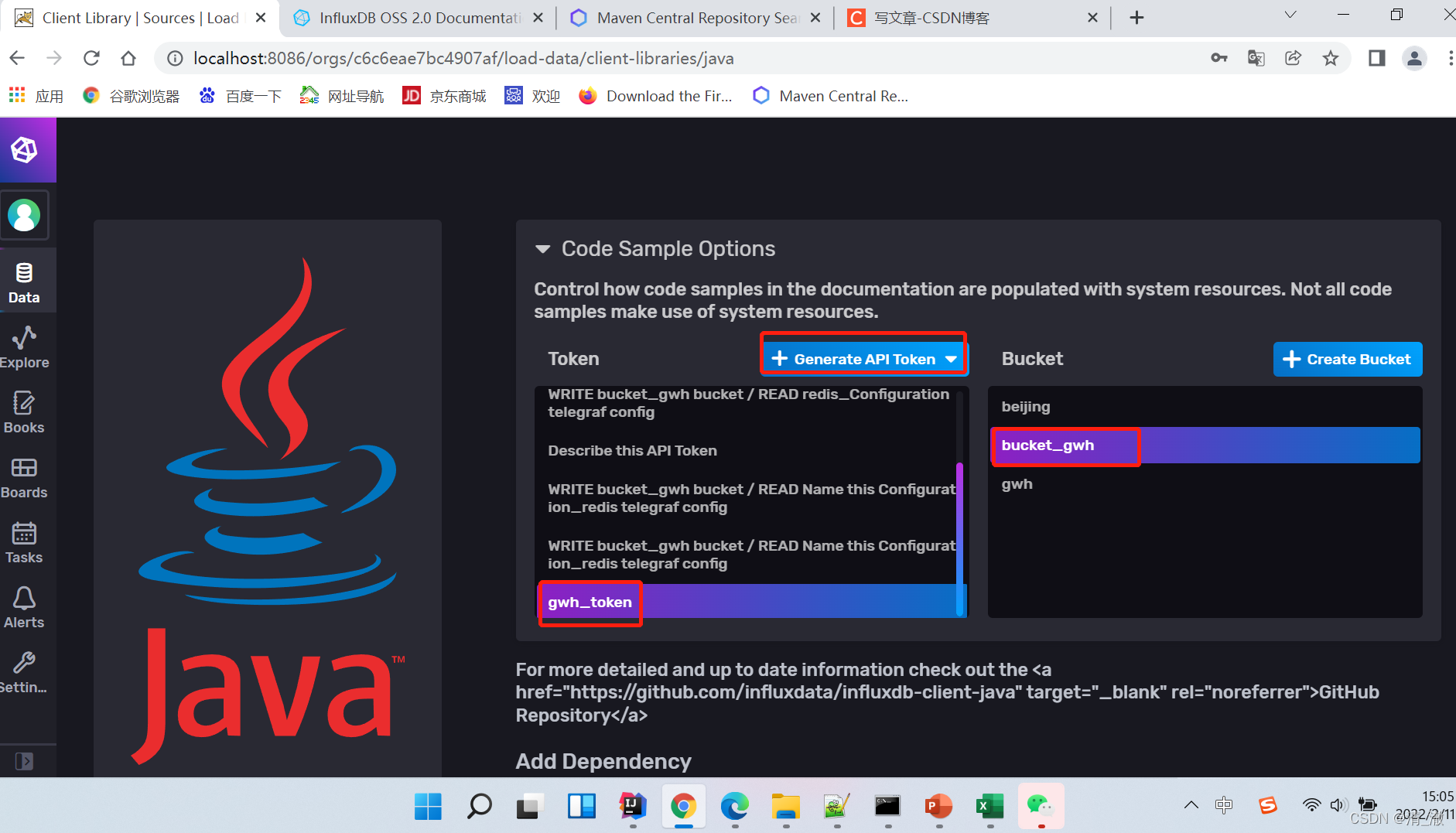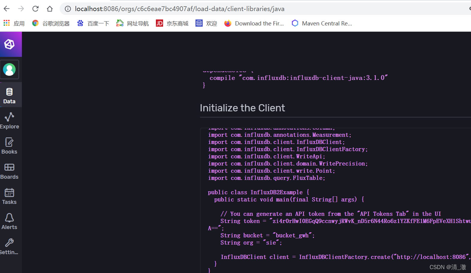 3、编写InfluxDB2Example.java类集成 初始化客户端,demo已经帮你自动生成,直接拷贝进去