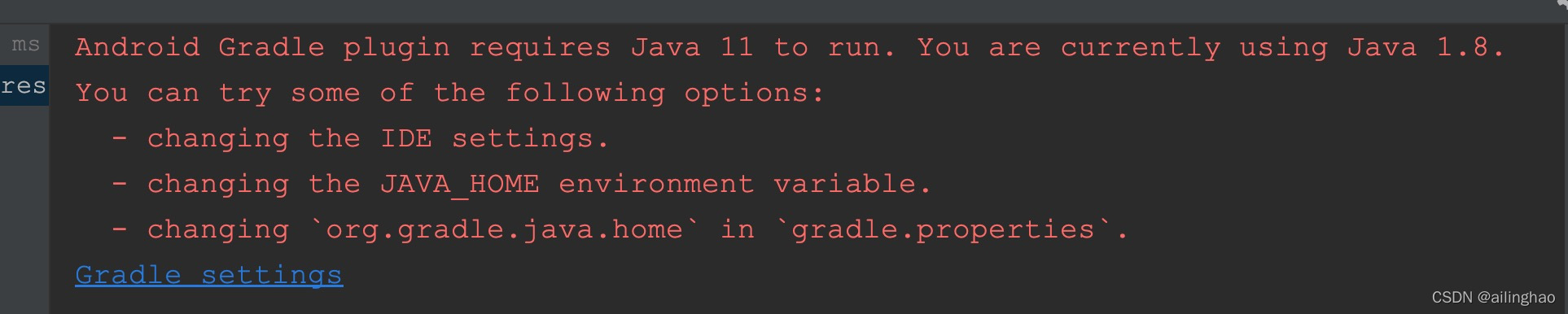 当Java版本不正确时,Gradle的sync阶段回报错如下: