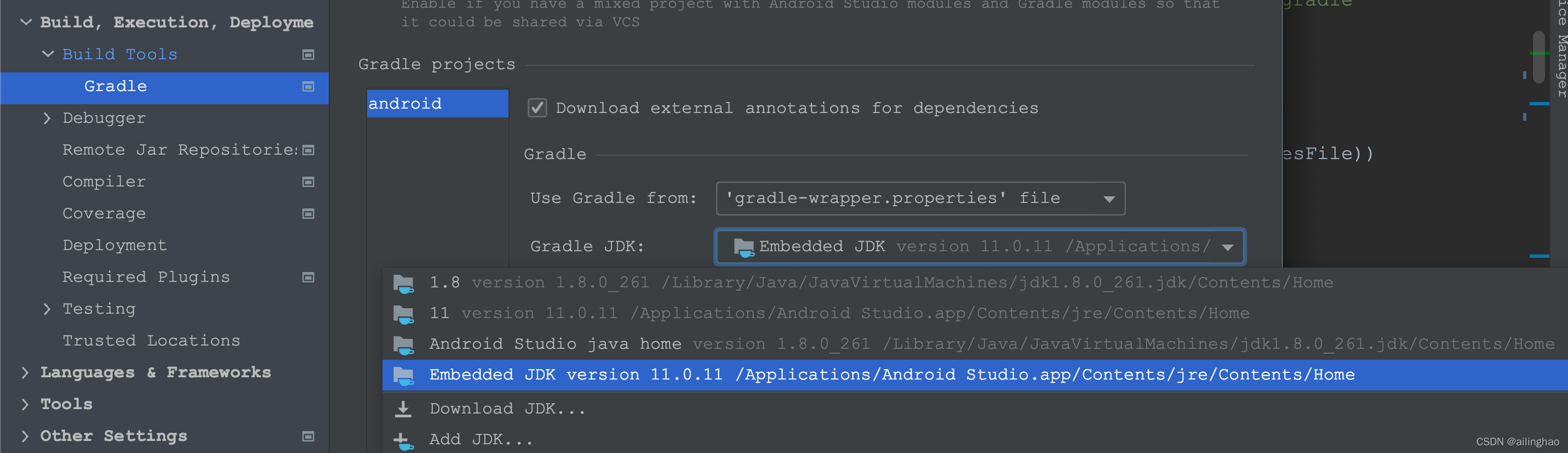 需要注意gradle的Java版本并非AndroidStudio工程依赖的Java版本。
