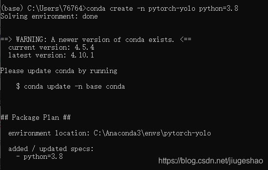 和博主前面几篇博客配置环境一样,在Anconda python环境下进行配置。yolov3的一些资料可见博主的博客目标分类、语义分割、目标检测中的深度学习算法阶段性总结_jiugeshao的专栏-CSDN博客