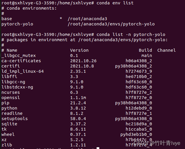 conda remove -n env_name numpy查看当前所有虚拟环境的名字,以及各虚拟环境下所包含的库命令