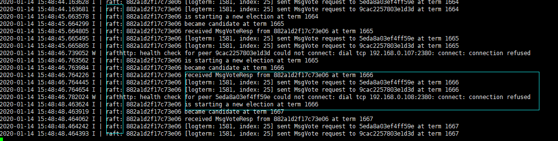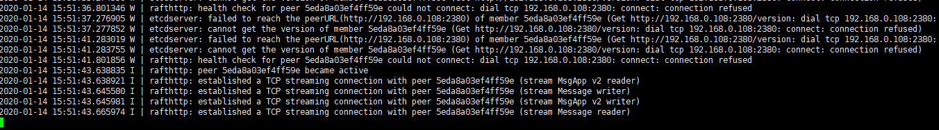 看下最后的这一台的etcd启动的那个窗口。