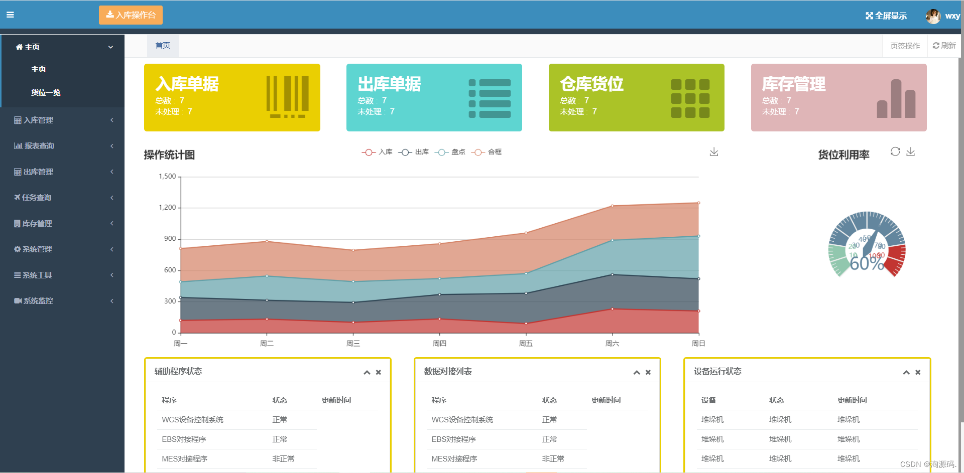 (自动化立体仓库原料库版本)是基于自动化输送线、机械臂、点数机、提升机、堆垛机等自动化设备技和现代化仓储精益管理思想开发出来的仓库管理系统。通过对接工厂的EBS、MES等系统接口,实现仓储上下游的数据打通,也是实现完全自动化的基础。已经成功使用于某制造业原料库全自动无人仓库中。需要源码学习可私信我。
